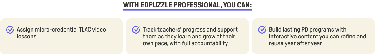 Ready to explore how Edpuzzle Professional can help streamline PD in your school or district? Schedule a call with an Edpuzzle team member and join the hundreds of thousands of schools already using Edpuzzle.